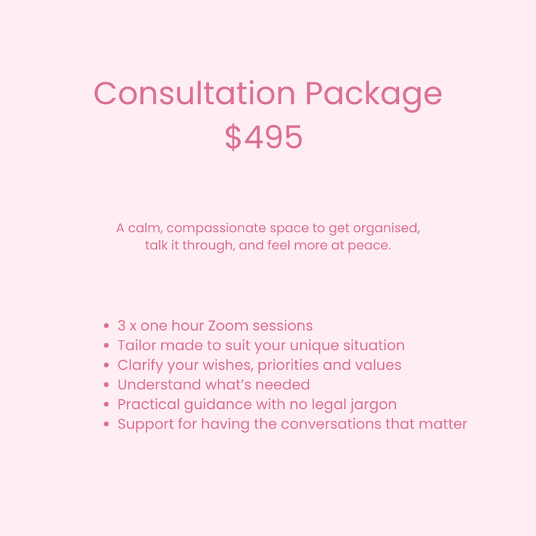 Choose the right consultation package for where you're at now. All sessions are warm, practical, and guided step-by-step.